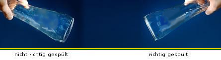 keine Rückstände von eventuell benutztem Reinigungsmitteln